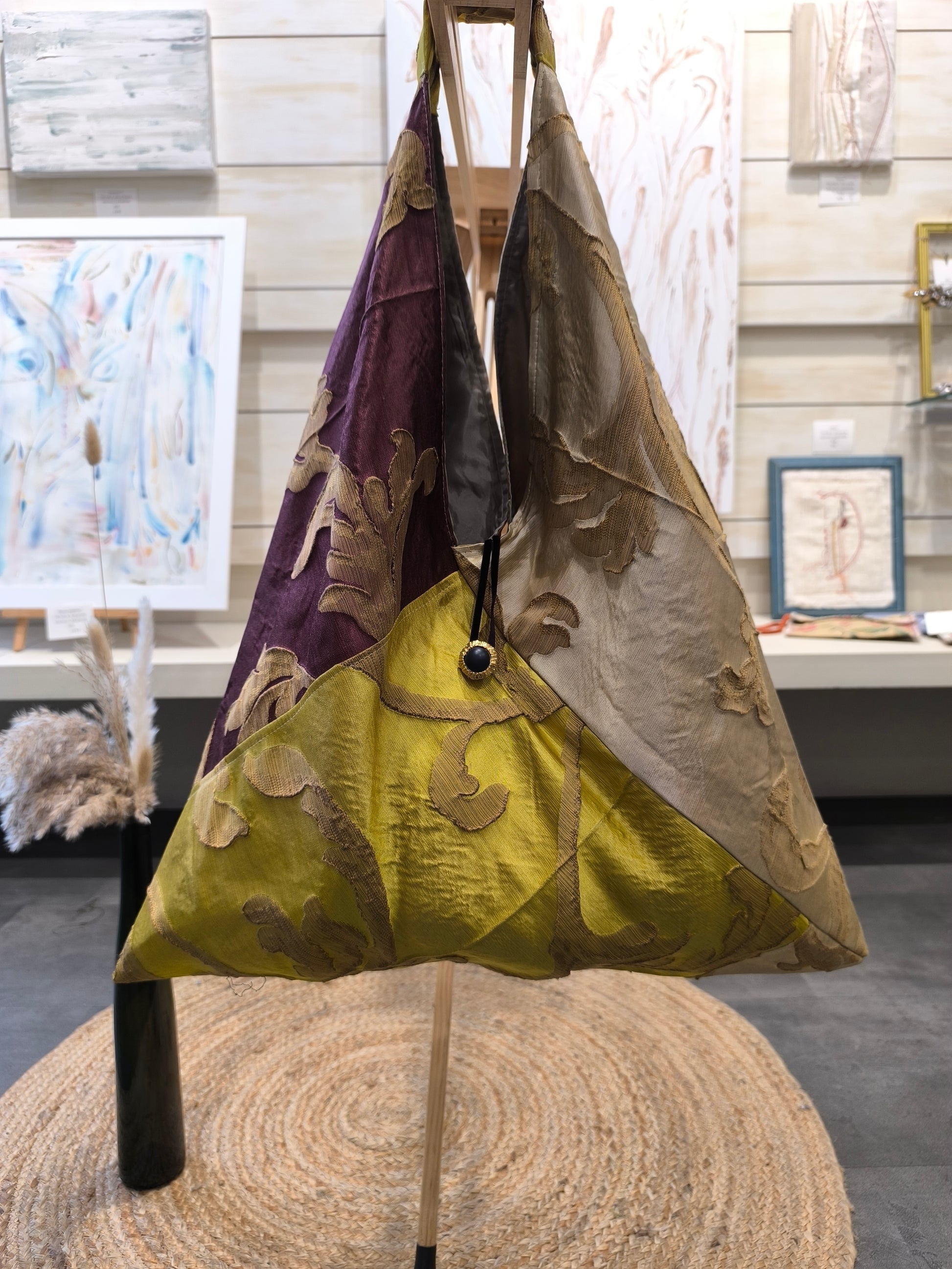 La borsa Origami Mona è realizzata con stoffe di seta resistente e foderata, perfetta per un uso quotidiano.