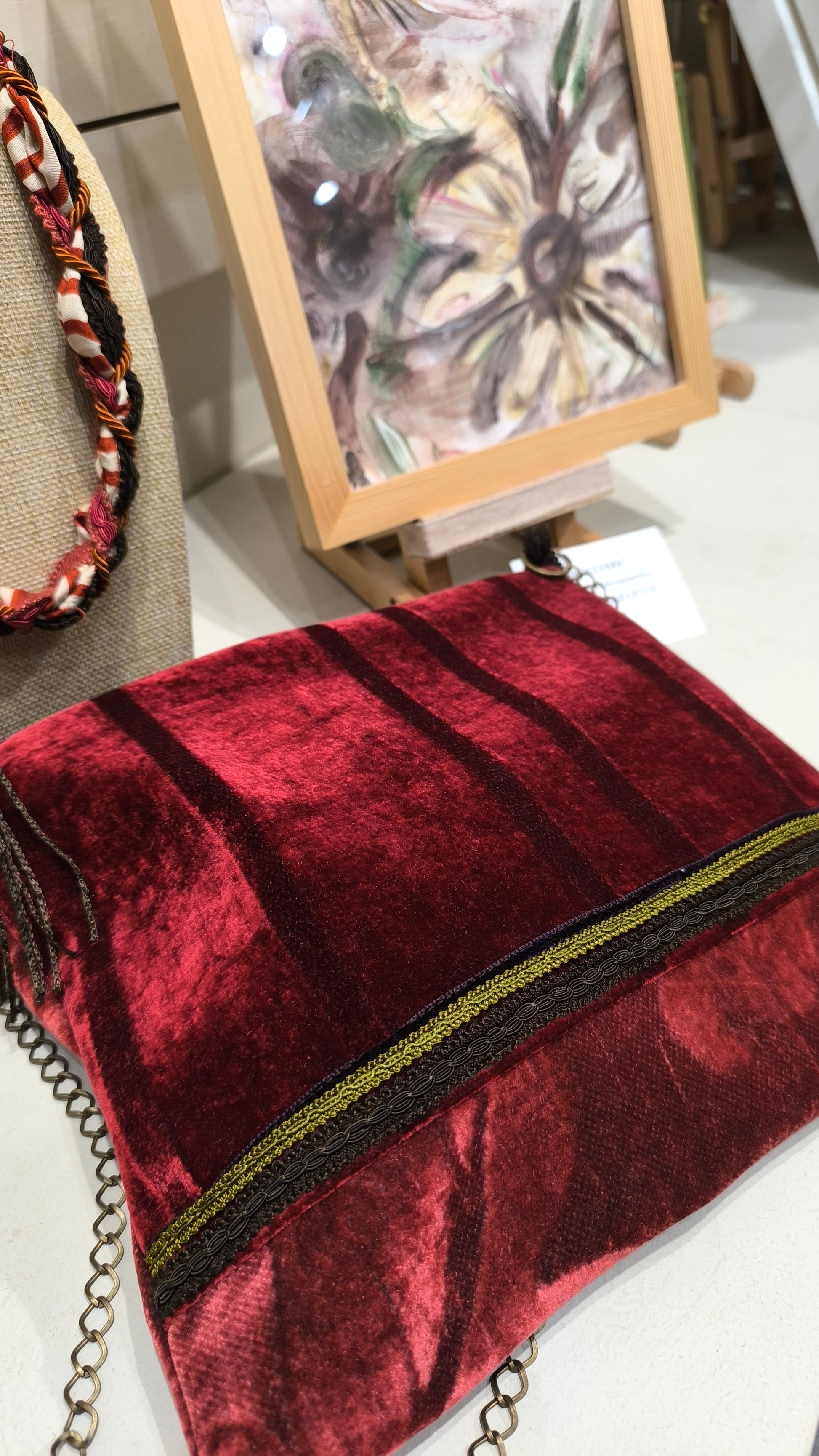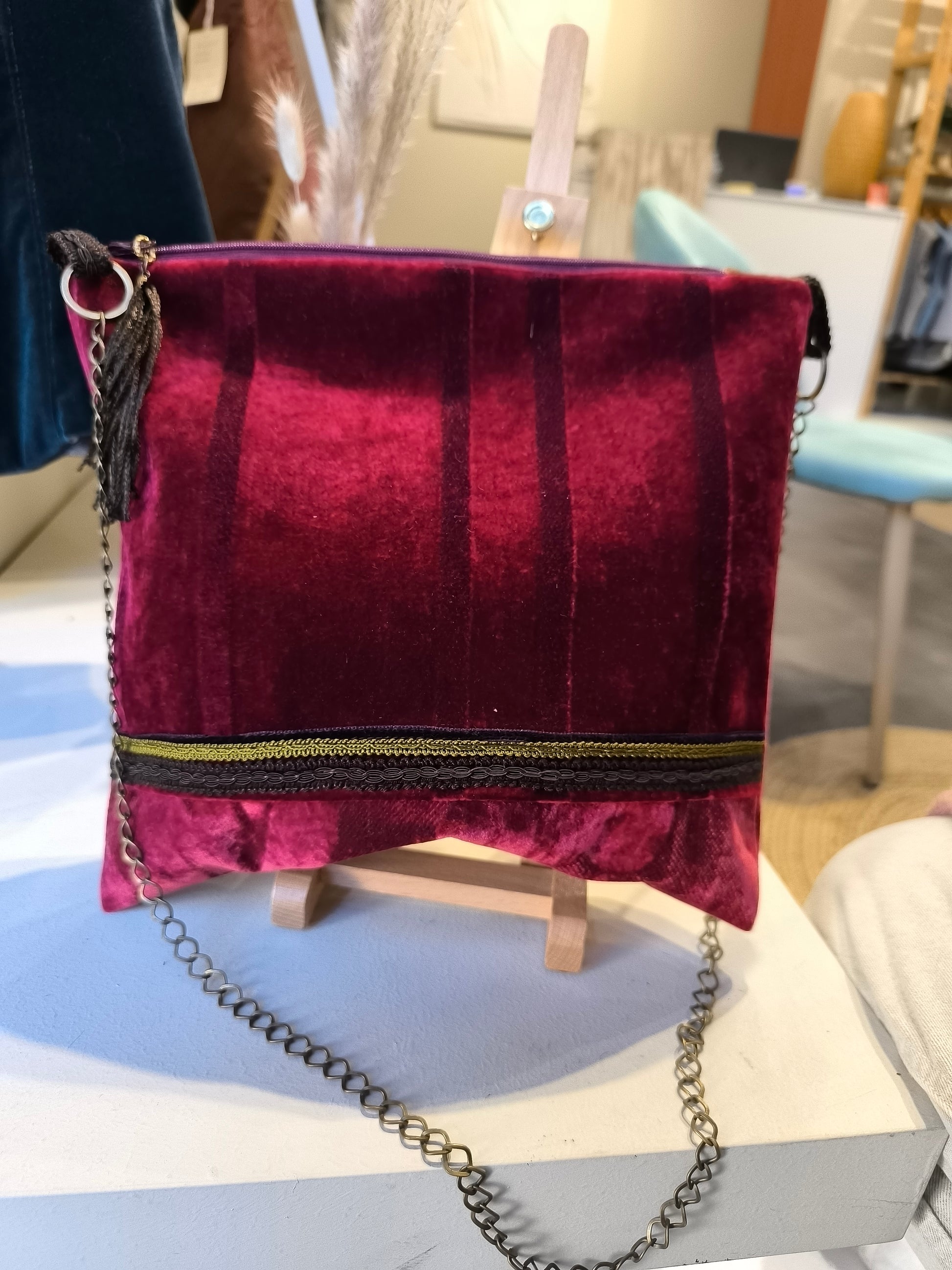 Ogni lato della borsa ha un velluto diverso ma uniti per la tinta.