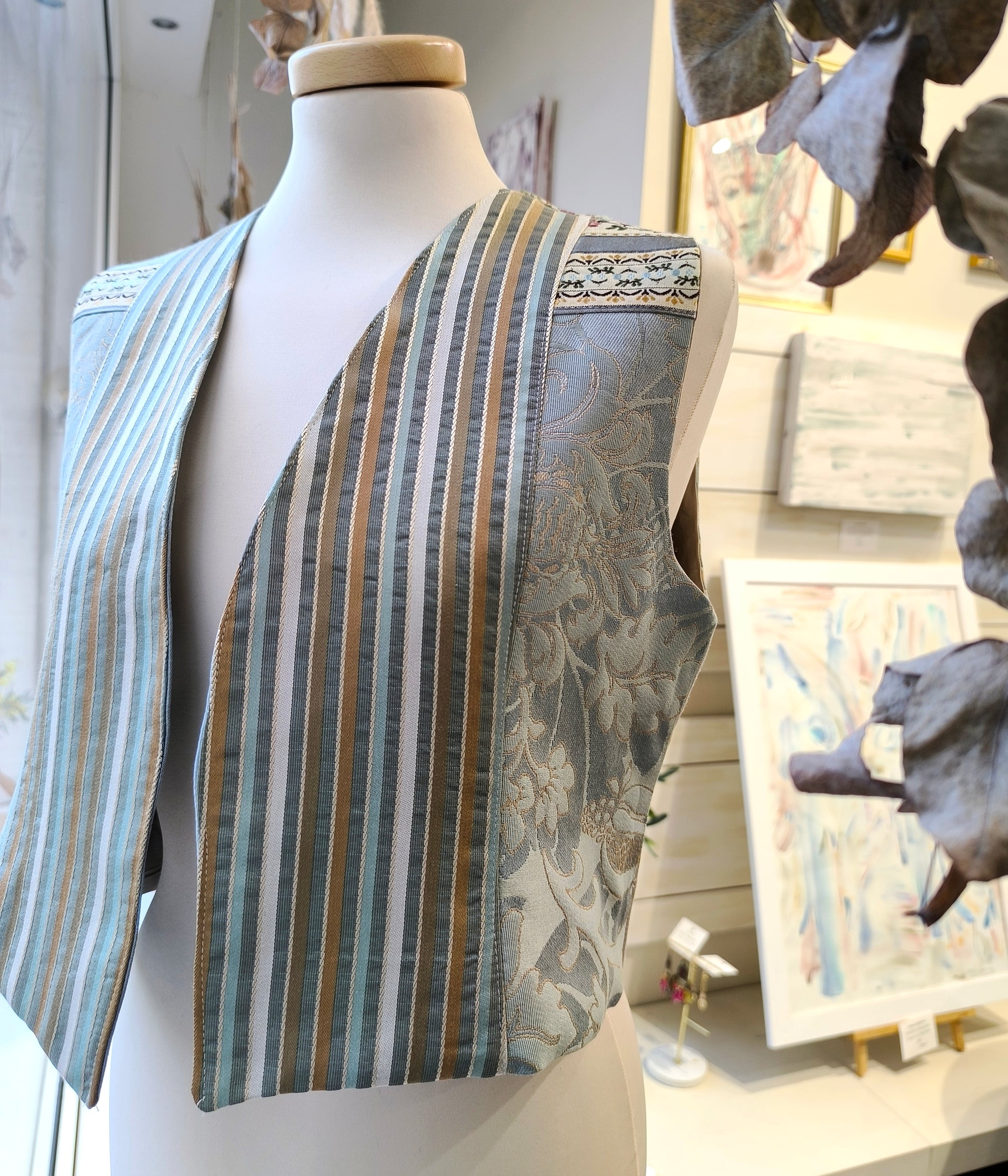 Gilet fatto in patchwork con stoffe vintage di tappezzeria con fodera di seta.